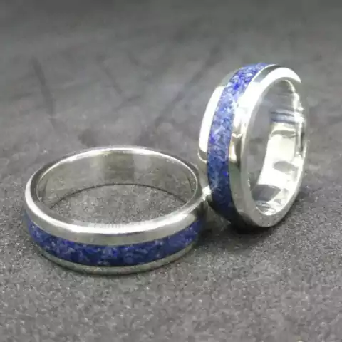 A aliança de prata com lápis-lazúli é uma joia feita de metal prateado e com uma pedra preciosa azul chamada lápis-lazúli. O anel é projetado para casamentos ou ocasiões especiais e é comumente usado como um símbolo de amor e compromisso. A cor azul do lápis-lazúli dá um toque de elegância ao anel.